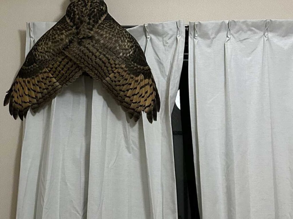 飼い主「ひっくり返りそうになりました」 カーテンレールにとまっていたのは…?