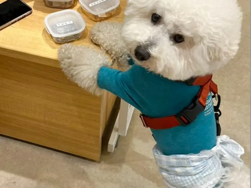 Xアカウントで愛犬の日常を投稿している、飼い主(@papoter_dog)さんと暮らす、ビションフリーゼのパポテくんは、あるお店に行って大興奮してしまいます。