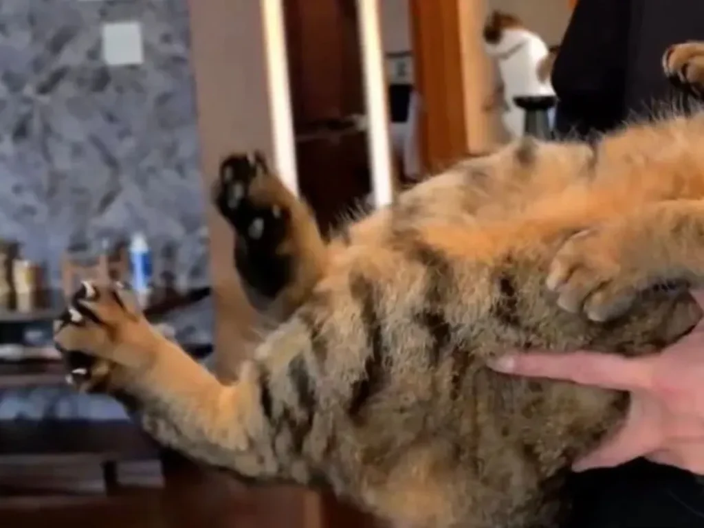 おしりトントンで体がどんどん伸びる猫