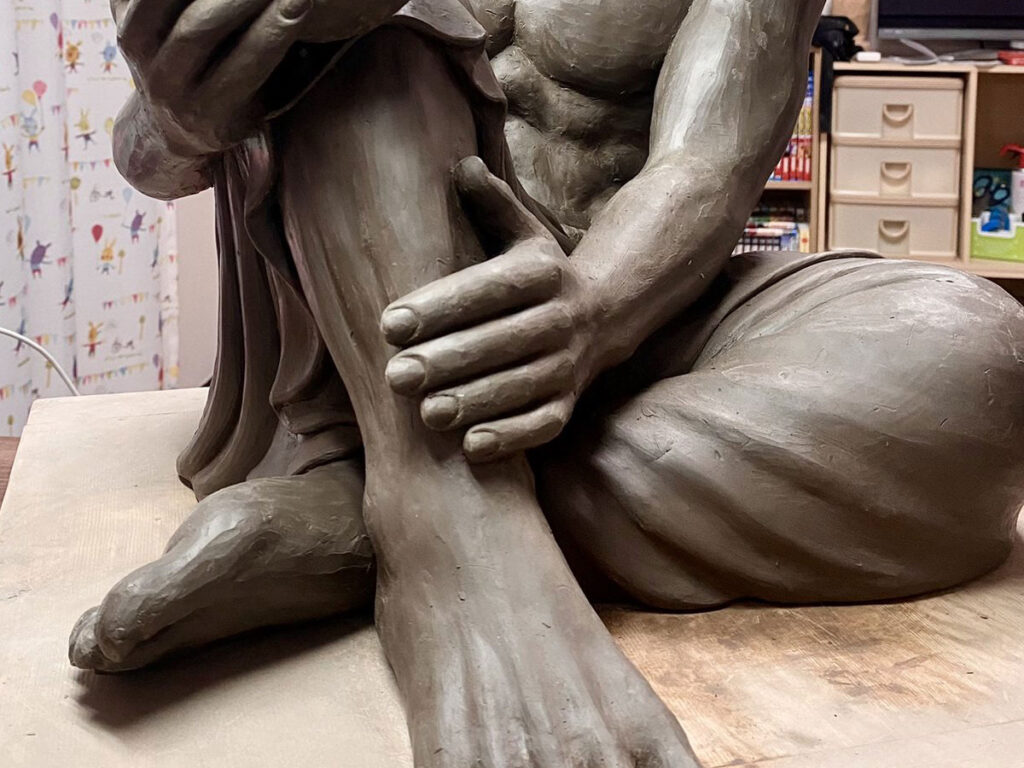 写真の段階では、粘土での造形が終わって乾燥中とのこと。