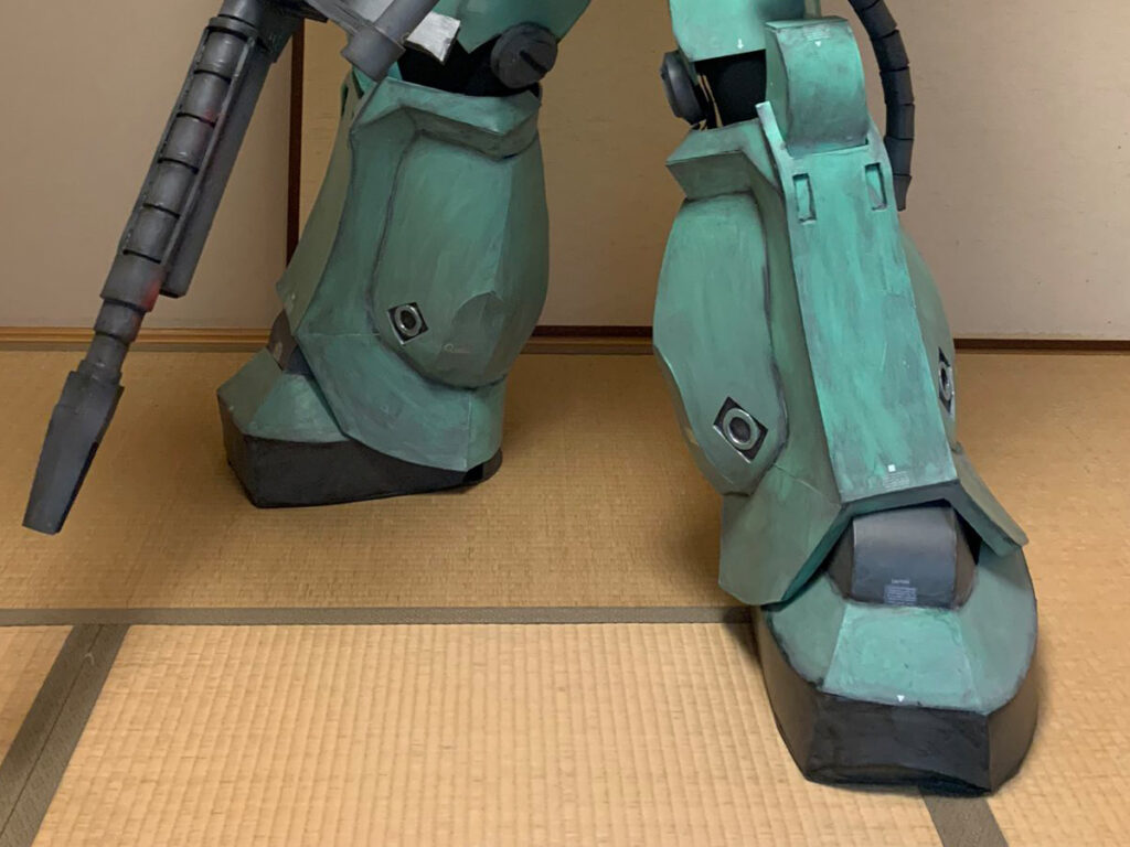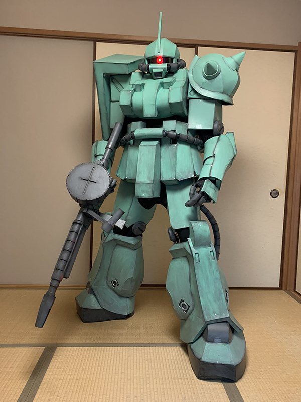 なんとこのザクは、ALEXさんの手作り。段ボールなどを使って制作されたモビル『スーツ』は、着たまま動くこともできるのだとか!
